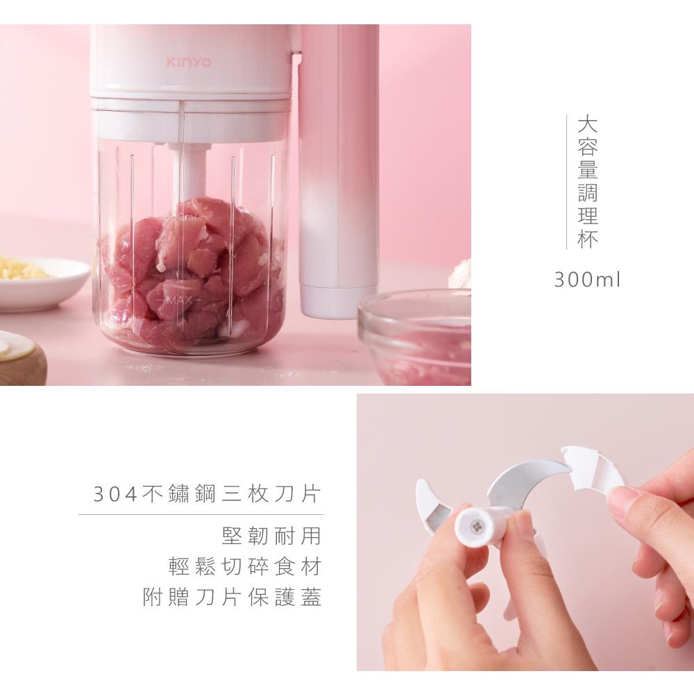 .簡單組裝,按壓即可使用,直覺操作。 .三枚刃不銹鋼刀頭設計,輕鬆切碎食材。