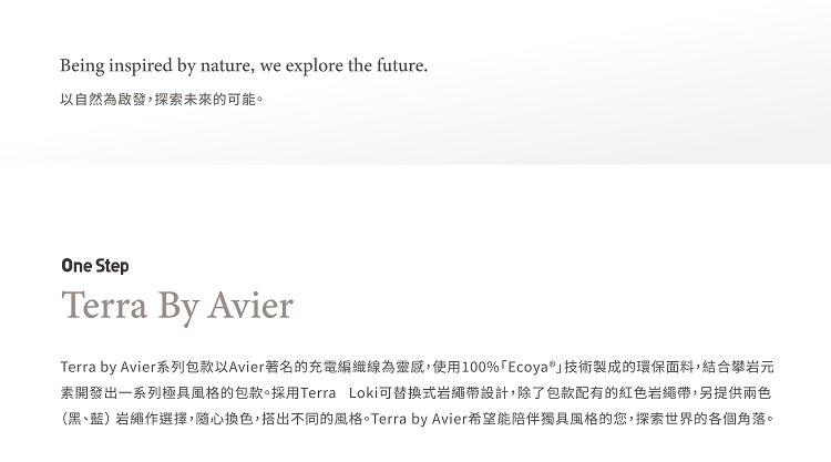 結合環保x生活x戶外的多元素獨創美學。採用Ecoya®環保面料,減低浪費環境友善。一繩多用的Loki岩繩帶,隨意抽換玩味設計。專屬行動週邊收納系統,物品有序收納。