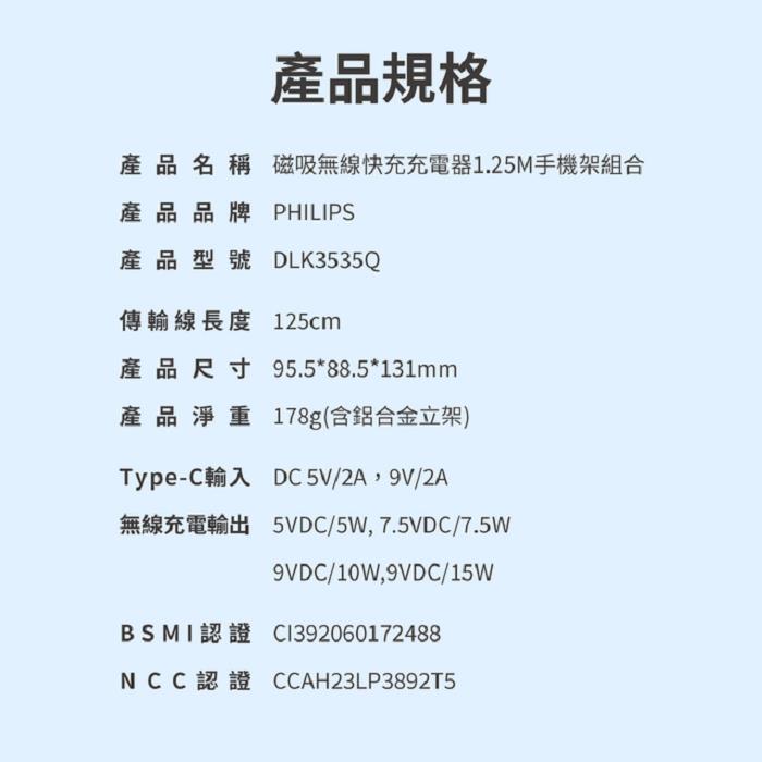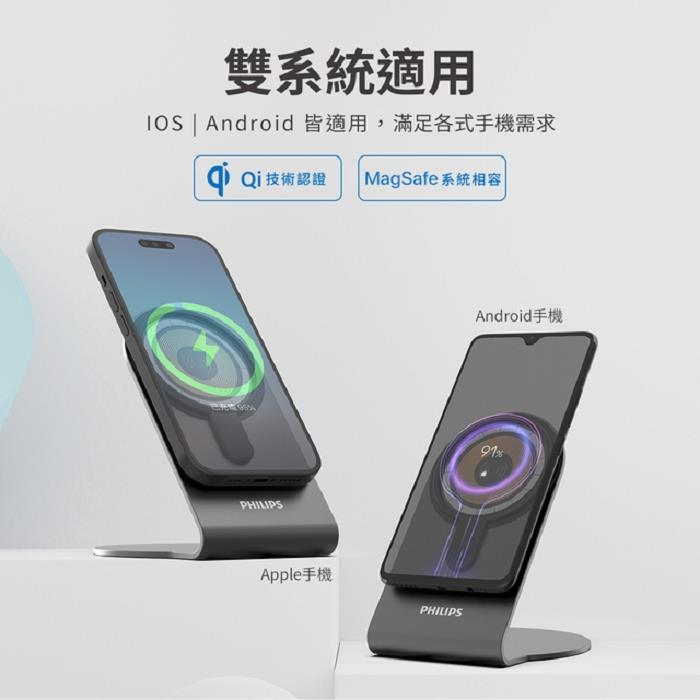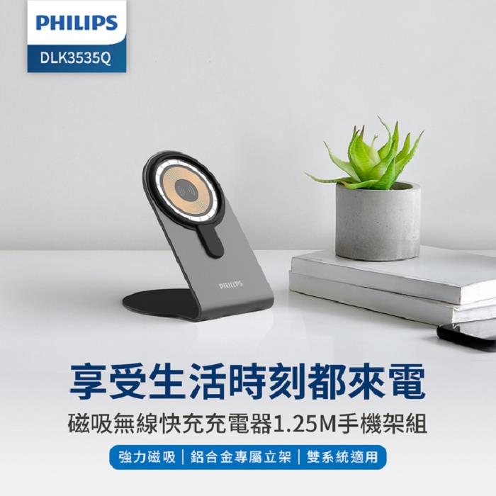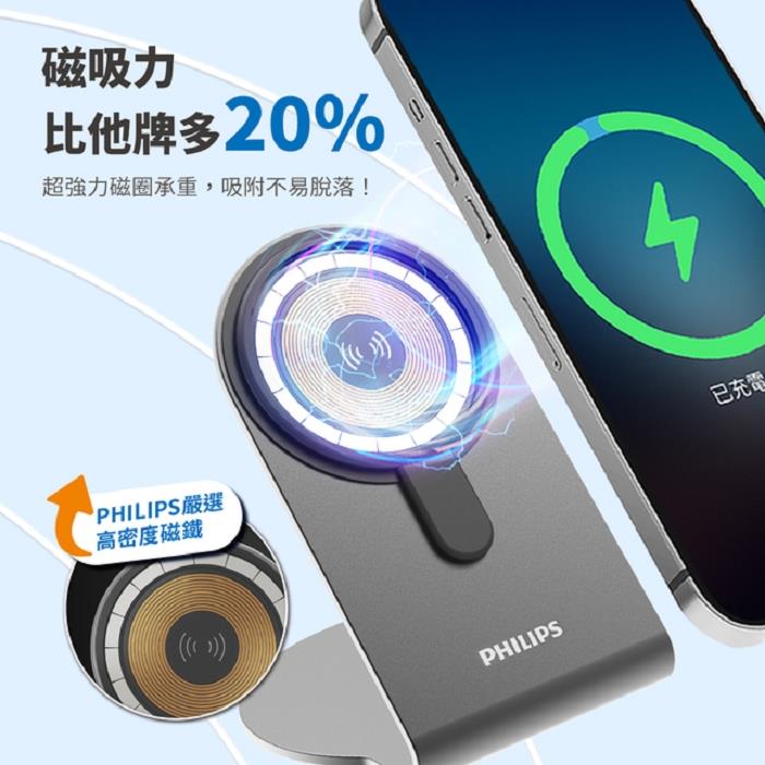 PHILIPS 磁吸無線快充充電器 1.25M手機架組合