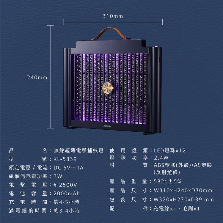 KINYO- KL-5839BU 無線超薄電擊捕蚊燈