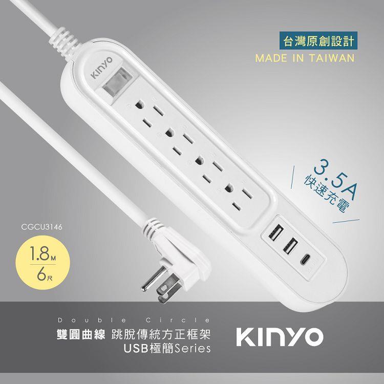 【KINYO】CGCU3146雙圓1開4插USB延長線6尺