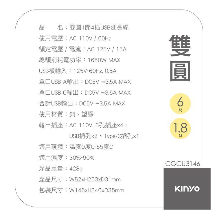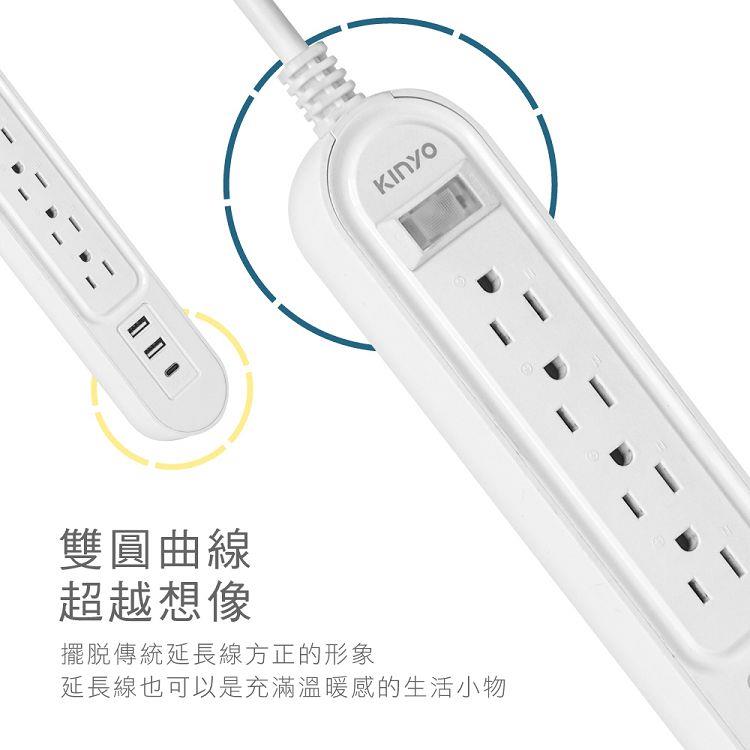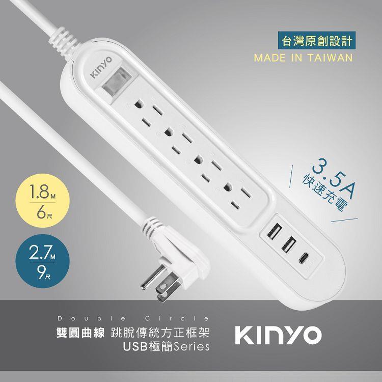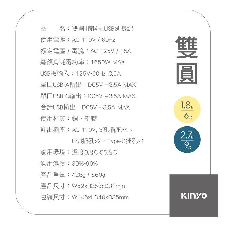 【KINYO】CGCU3149雙圓1開4插USB延長線9尺