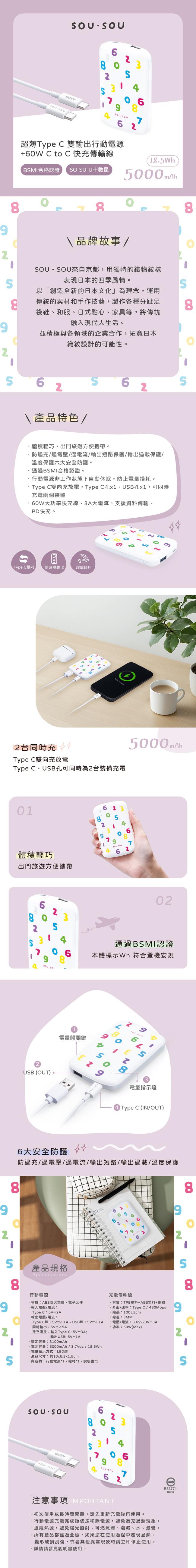 SOU.SOU十數昆 超薄Type C 雙輸出行動電源 + 60W C to C 快充傳輸線