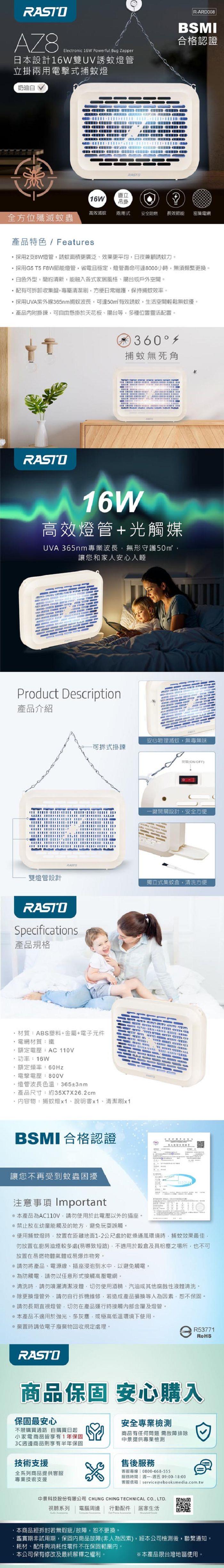 ‧採用2支8W燈管,誘蚊面積更廣泛、效果更平均,日夜兼顧誘蚊力。