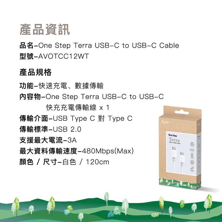 【Avier】One Step Terra USB-C to C 環保快充傳輸線 1.2M
