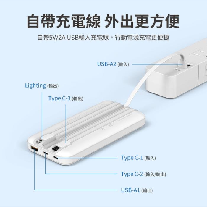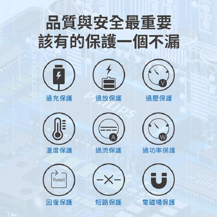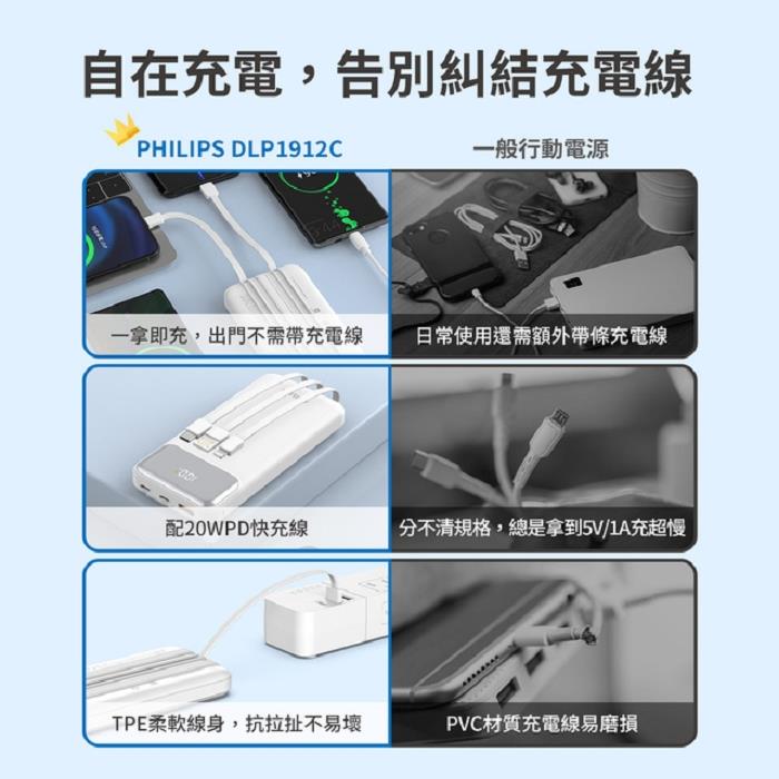 PHILIPS 10000mAh自帶三線快充行動電源 白