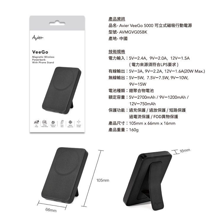 【Avier】VeeGo 5000可立式磁吸行動電源