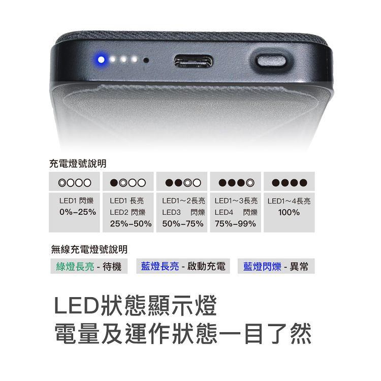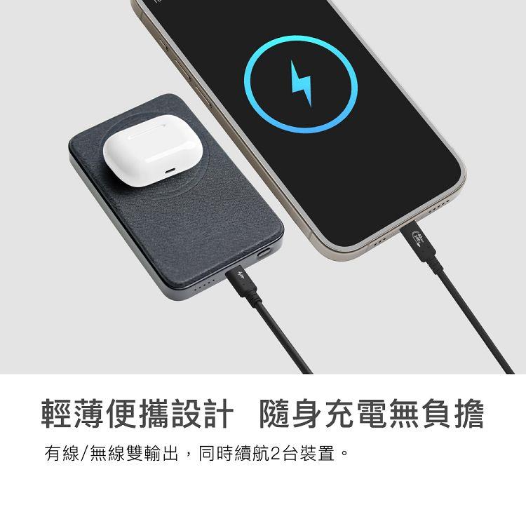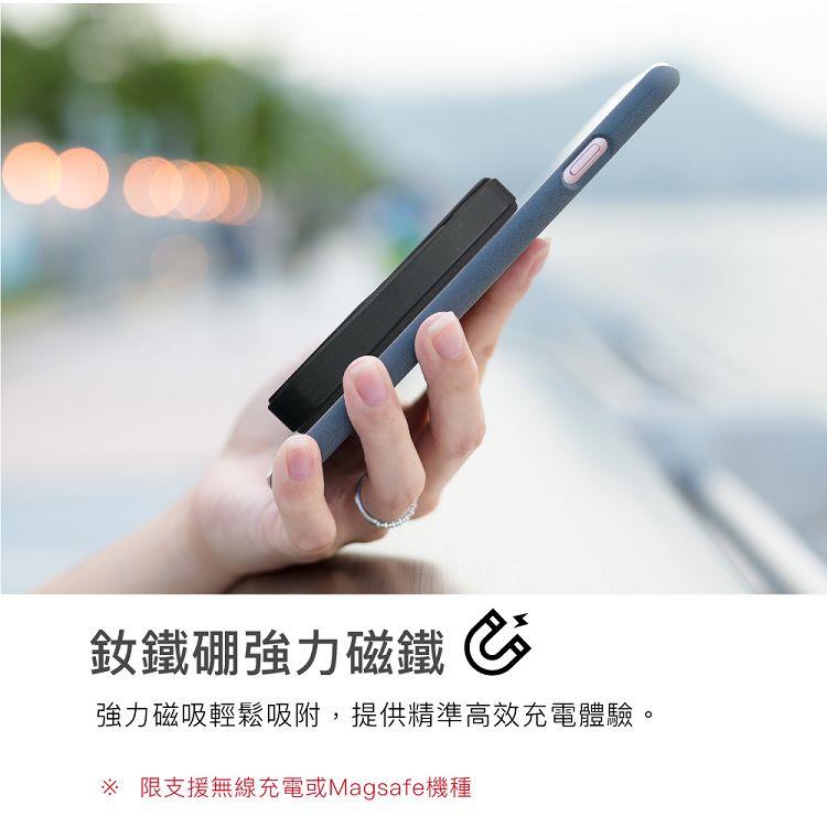 20W 極速有線快充,瞬間滿電體驗15W 無線充電,智慧快充無間斷釹鐵硼強力磁鐵,提供精準高效充電體驗直覺折疊支架,自由切換垂直/水平/懸浮觀看模式皮革布紋設計,提供極致舒適手感輕薄便攜設計,隨身充電無負擔有線/無線雙輸出,同時續航2 台裝置CoreProtect™ 2.0 全方位安全防護,提供絕佳安全性FOD(Foreign Object Detection)異物偵側保護機制LED 狀態顯示燈,電量及運作狀態一目了然通過國家BSMI 及NCC 認證,使用更加安全可靠