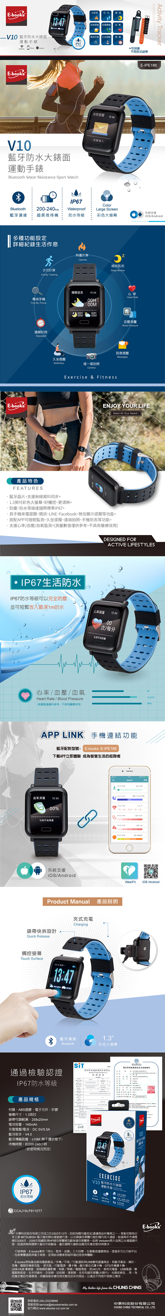 E-books V10 藍牙防水大錶面運動手錶