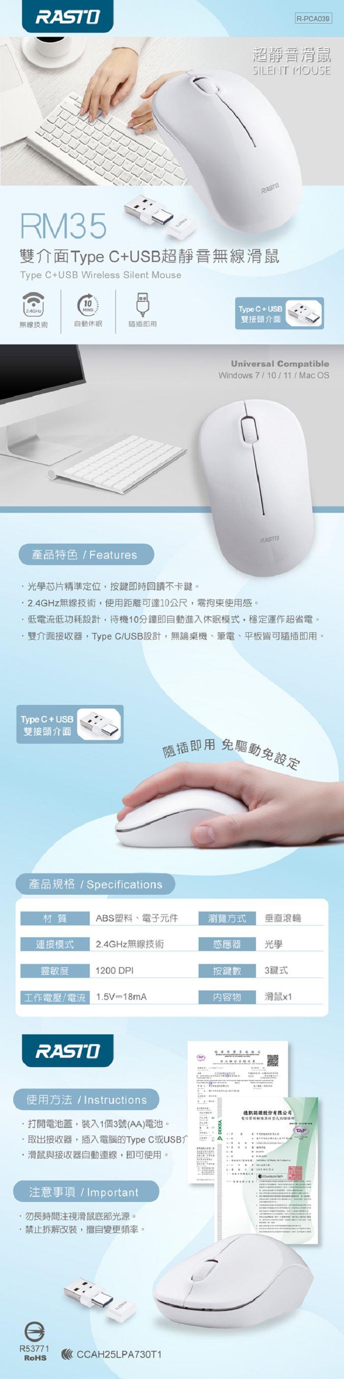 ‧雙介面接收器,Type C/USB設計,無論桌機、筆電、平板皆可隨插即用。