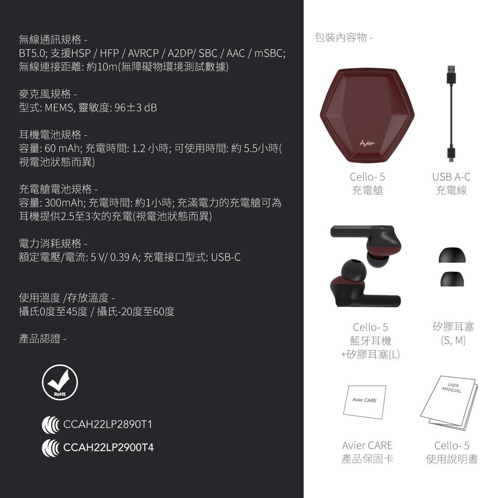 【Avier】AAL Cello-5 真無線藍牙耳機_紅色