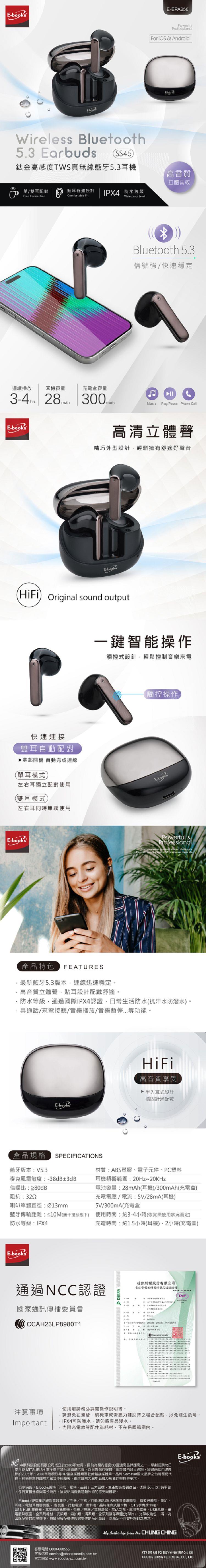E-books SS45 鈦金高感度TWS真無線藍牙5.3耳機-黑