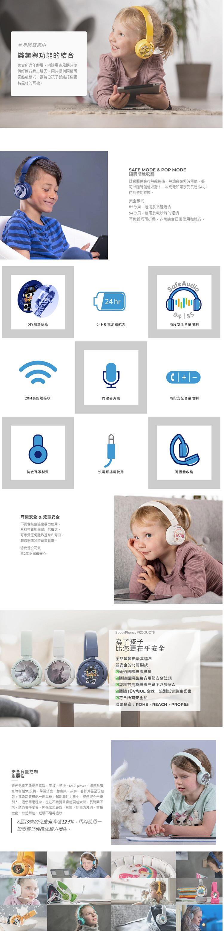POP FUN 系列,這款只有2段式的安全音量控制,簡約的外型設計,功能也比較簡單,算是比SCHOOL+再進階一點,改善了SCHOOL外出容易聽不清楚的問題,雖然少了凸顯人聲的學習模式,也沒有主動降噪,但是以價格來說算是新手滿好入門的一款,如果孩子已較大齡,也喜歡簡約的外型的夥伴可以考慮!