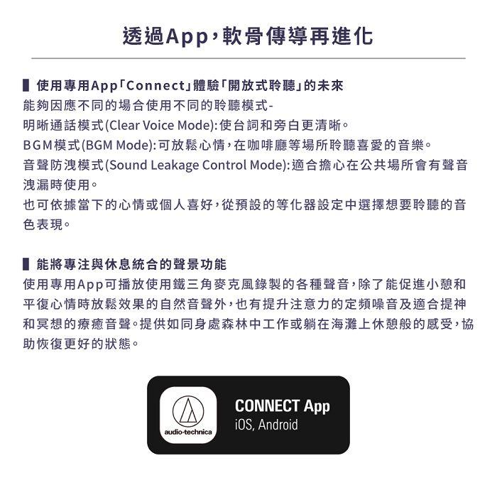 另外可以配合鐵三角APP自由切換:明晰通話模式、BGM模式、音聲防洩模式…等專屬功能,達到最佳的使用體驗