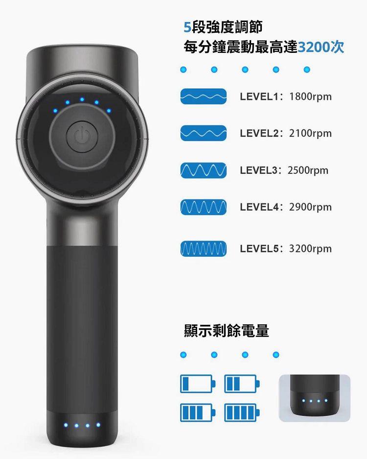 * 5 種速度, 5種不同形狀按摩頭可供選擇