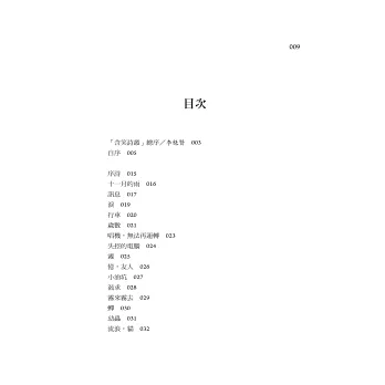 詩集主題包羅萬象,小從〈蟬〉、〈荷〉,大至〈生命〉、〈結束〉,從簡約詩句中,探討著深刻議題,情感絲絲入扣,令人讀來尾韻流連忘返。