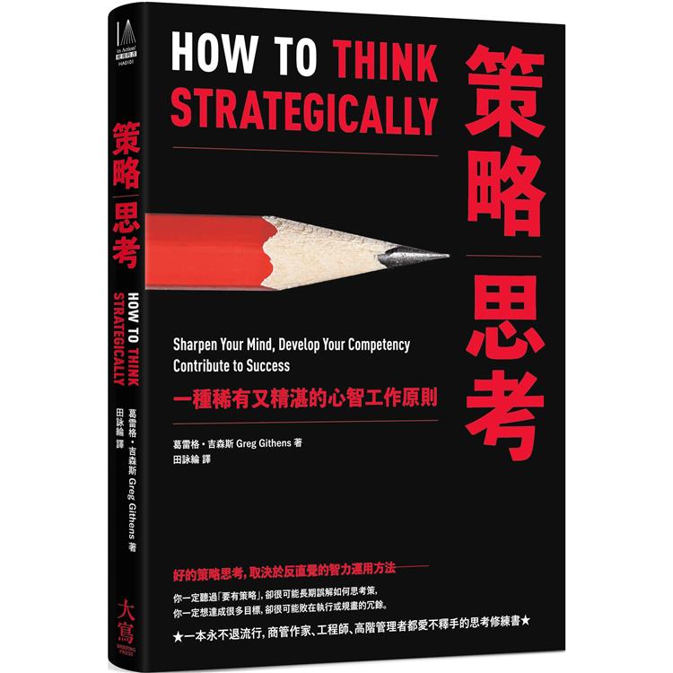 你一定知道「策略思考」,或者「某種想法必須要更有策略性」,但究竟什麼是策略思考,思考和一般性的思考有何不同,它如何練習乃至達成更佳的成效?