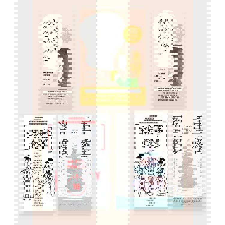 ★ 本套書內含: 《自律神經名醫親自傳授:用好心情創造好人生》 《自我調整的習慣》 《重整習慣 重開機生活,打造新人生》 《自律神經名醫親自傳授:用好心情創造好人生》 ◎精選72招調整自律神經小訣竅,讓你輕鬆遠離低潮心情! ◎篇章清楚簡潔、一目瞭然,可針對自身情況選擇調整方式! ◎由日本自律神經名醫親自撰寫最新、最專業的保健資訊! 每個人在不同人生階段努力的時候, 總會遭到突如其來的低潮期侵襲…… 何謂「突如其來的低潮」? 就是指自己也不知道為什麼, 明明沒有遇到什麼特別大的困難, 可就是提不起勁,做什麼都不快樂, 甚至可能開始討厭自己…… 任何人都有可能會陷入突如其來的低潮, 也很難說這一刻會在什麼時候來臨。 因此,保持健康的心靈狀態, 將是創造美好人生的第一步。 只要心情好了,所有事都會好起來! 【曬太陽】▶▶交感神經優先運作,打開活動模式的開關, 並促進身體分泌別名「幸福荷爾蒙」的血清素。 【午餐前喝水】▶▶打開腸胃蠕動的開關,使副交感神經居於主導地位, 預防飯後的急遽轉換以避免睡意。 【泡溫水澡】▶▶泡在39至40度的溫水中約15分鐘最為理想, 促使副交感神經優先運作,放鬆身心。 快來藉由本書掌握【自律神經】調整之道, 常保積極正向的態度與好心情吧! 《自我調整的習慣》 ◎收錄108條維持身心平衡的方法! ◎方法簡單,可迅速掌握且效果超群! ◎配合時勢大幅修訂,為後疫情生活提供全新方向! 以下項目,你中了幾項呢? ▢吃飯就是要吃飽 ▢工作太忙,只能省略細節 ▢包包好看最重要,但總是找不到東西 ▢每天都滑社群媒體 ▢只要同事邀請,就去參加聚會 ▢因為遠距工作,變成足不出戶 若是困擾著「早上起來,總是覺得渾身不對勁」、「明明身體很累,卻總是失眠」, 不妨重新檢視一下生活習慣, 因為這些微小的日常行為,都會影響到自律神經, 導致身心失衡、無法發揮出百分之百的能力。 近幾年新冠疫情席捲全球,帶來的不僅僅是病毒蔓延的威脅, 日常生活完全顛覆而產生的「新冠憂鬱」更是隱形的殺手。 生活劇烈變化、看不見未來、無法與人面對面聊天, 都會在無形中增加壓力,嚴重擾亂身心平衡。 日本自律神經第一人小林弘幸配合時勢, 為後疫情生活提供新方向, 即使生活方式產生劇變,也能整頓好身心、發揮100%的能力!   《重整習慣 重開機生活,打造新人生》 ◎本書提供獨特的「重開機」觀念,幫助你割斷負面循環,開創全新的正面循環。 ◎書中提供99項實用的行動方法,讓讀者能從今天開始實際應用,獲得立即效益。 ◎本書不僅關注身心健康,還強調人生的重開機,鼓勵讀者積極思考、主動行動! 疫情後的心靈與身體改變指南   自律神經名醫親自傳授,提供99項有效「改變惡性循環」的行動策略。 突破停滯,迎接嶄新生活!   疫情衝擊下,持續沉寂和孤獨感悄然侵襲身心。 那麼,我們現在最需要的是什麼呢?   答案就是「大膽地、有意識地重新出發」和「不要再回頭,嘗試新事物」! 現在正是重開機、重新出發的時刻,更是嘗試新事物的機會!   《重整習慣》作為「疫情後的處方箋」,提供心靈和身體的重開機方法。   本書亮點 ・早上花1分鐘塑造全新的1天 ・重視每個小小成就,提升心情 ・整理1個小角落 ・每週四設定為「重新開機日」 ・學會享受獨處時光 ・單憑1個小動作讓壓力飛走 ・向重要的人表達感謝  ・學會活在當下   本書內容充實,利用99項具體的行動妙方,就能立即著手重整自己的生活。 不僅是指導如何克服困難的實用書籍,還是鼓舞人心、重新點燃生活激情的指南。   翻開《重整習慣》,開始您的旅程,並一步步改變生活。 讓我們一起學習「重開機」,迎接全新的自己! 作者簡介   小林弘幸   順天堂大學醫學院教授。 日本運動協會認證運動醫師。 1960年出生於日本埼玉縣。 1987年順天堂大學醫學院畢業。 1992年順天堂大學醫學研究所結業。   曾任職於倫敦大學附設英國皇家兒童醫院外科、都柏林聖三一大學附設醫學研究中心、愛爾蘭國立兒童醫院外科,之後擔任順天堂大學兒童外科講師、助理教授。   身為自律神經研究的第一人,曾協助眾多運動員、藝術家、文化界人士,提升自身狀態與表現。   主要著作包括《自我調整的習慣:重整自律神經,讓身心回歸平衡的108條行動準則》(楓葉社文化)、《長壽味噌湯:醫學實證!一天一碗,輕鬆喝出不生病的免疫力!》(三采)等。