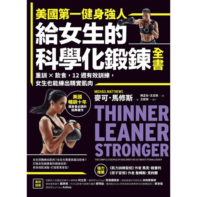 女生很難練出肌肉?女生也需要高蛋白飲食?本書將打破女性鍛鍊者的健身迷思,並提供適切的訓練計劃,從重訓菜單、靈活飲食、熱量計算法等等,量身打造。想要減重瘦身、建立完美體態,或是增強肌力,本書皆提供詳盡的飲食與重訓計畫。