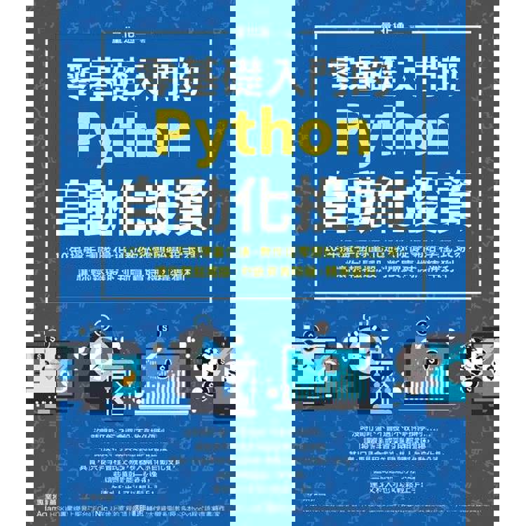 沒時間盯盤、不會選股、不敢停損停利⋯⋯ 讓投資新手或資深股民都相當困擾, 其實,只要學會程式交易,機器人幫你自動化投資, 這些問題就能一勞永逸, 連文科人也可以輕鬆上手!   ★ 第一次用Python投資理財就上手 ★ 5大策略╳3大數據整理套件╳2大爬蟲基礎╳基礎語法╳選股模型╳LINE即時通知 ★ 超過5,000名學員實證,可以簡單學習、好用的自動化投資法   如果你有這些問題,必讀本書: .想要投資卻不知道怎麼開始 .沒有程式基礎,也不知道怎麼入門用Python投資理財 .資訊爆炸的時代,不知道哪些才是有用的數據 .到底要怎麼快速取得股市的報價 .總是沒有時間看即時的股市資訊,導致錯失進出場良機   ◎ AI取代人工投資,程式交易已成為時代主流 隨著科技與網路的進步,AI逐漸取代人力,處理重複且瑣碎的工作, 也可以應用在投資理財的領域, 無論是基金、股市、期貨、加密貨幣,都可以看到AI的應用, 就連美國高盛集團也只剩三名人工交易員,幾乎所有交易流程皆透過電腦程式自動化, 國內外金融機構導入金融科技(FinTech)推出相關服務,大專院校紛紛開設相關課程, 「程式交易」明顯已經成為時代的主流。   ◎ 程式交易,讓你更輕鬆賺錢、賺自由 程式交易可以把原本由「人」操作的投資,全部交由電腦程式自動執行, 不僅能隨時追蹤股市行情,讓你不錯過買賣時機,減輕盯盤壓力, 更能用最嚴謹、最即時的數據,優化你的投資策略,戰勝不敢停損的心魔, 輕鬆獲利的同時,更獲得自由!   ◎ 程式交易的入門首選──Python 目前有各種可以應用在投資的交易程式,包括:Python、Multicharts、TradingView、MT4…… 而Python是一種廣泛使用的程式語言,適用於各作業系統,函式庫也非常豐富, 就連沒學過程式的小學生、文科生,都能輕鬆上手。   ◎ 第一次用Python投資理財就上手 致力於提供程式交易教學的量化通, 團隊累積數十年的投資經驗,管理資產規模達上億元, 多次受邀至各大專院校與知名企業擔任講師, 擅長用深入淺出的方式帶領投資新手輕鬆學會程式交易, 因此,透過本書,你將從零開始學到──   .5大策略:趨勢策略、動能策略、反轉逆勢策略、通道策略、籌碼策略 .零基礎學Python:從安裝到建置開發環境、基本語法、資料整理 .3大數據整理套件:datetime、csv、pandas .2大爬蟲基礎:get、post .選股模型:建立選股架構,實踐個人的選股策略 .LINE即時通知:設定不同種類的訊息,免費推送至到不同的群組   本書會用圖解和步驟的方式,帶你從零開始學會用Python投資理財, 還有許多實戰技巧和範例,讓你能避開人性的投資盲點, 優化選股策略,自動化投資,精準獲利!   本書幫你解決對程式交易的疑問: .要選擇哪種程式語言與軟體呢? .完全不會寫程式,要怎麼開始? .要準備多少資金?如何用最小的成本開始? .電腦設備要很好才能做程式交易嗎? .要如何知道程式執行的結果?