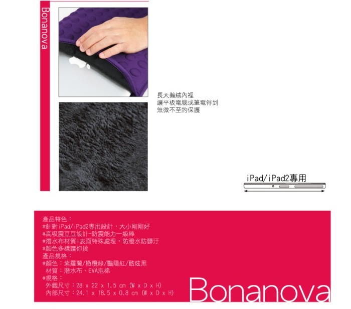 豆豆包長天鵝絨防震包iPad/iPad2專用-黑色
