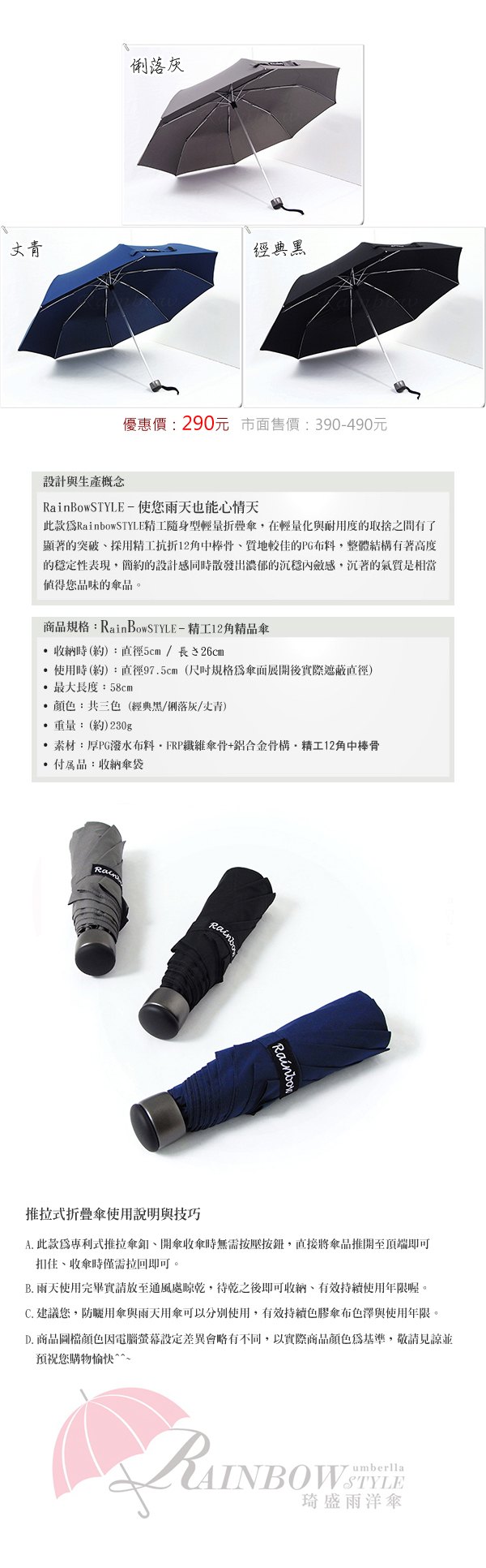 精工12角切割_潑水性晴雨傘/輕量-防風設計折疊傘(經典黑)