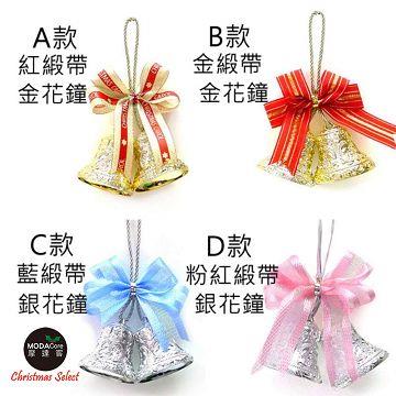 【摩達客】台灣製 2吋小花雕雙鐘蝴蝶結吊飾(一組四入)