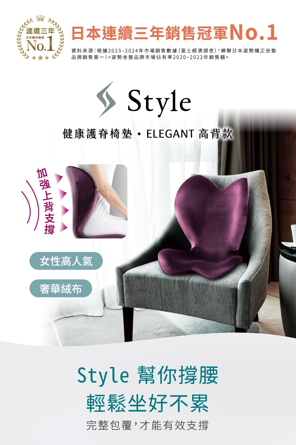 Style ELEGANT 健康護脊椅墊 高背款 高雅紫 (護脊坐墊/美姿調整椅)