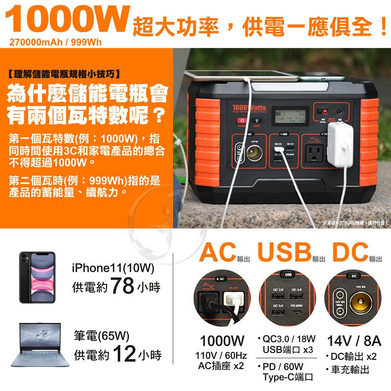 【日本KOTSURU】8馬赫 攜帶式儲能電瓶 1000W超大功率儲能電瓶 台灣製造/快速完整保固服務體系 購買請認明正版8馬赫,謝絕仿冒