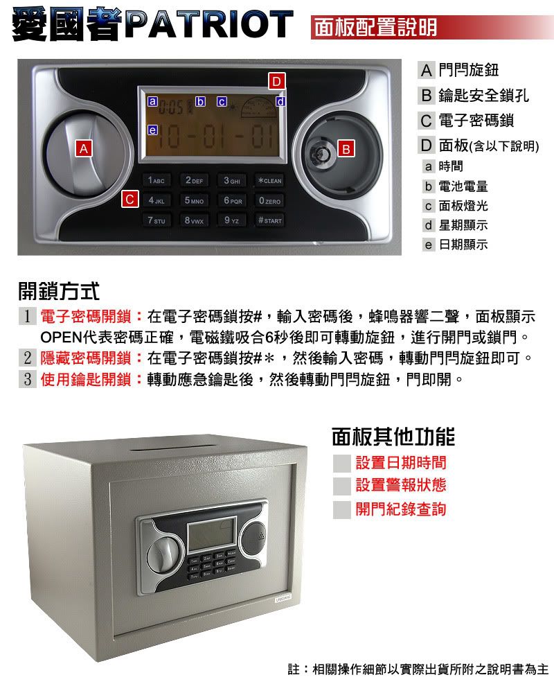 最新推出這款愛國者電子型密碼保險箱(25LA-D),頂端投入孔設計,可以在不打開保險箱的狀態下投入紙張,鈔票,或硬幣。省去您開鎖放置物品的時間。