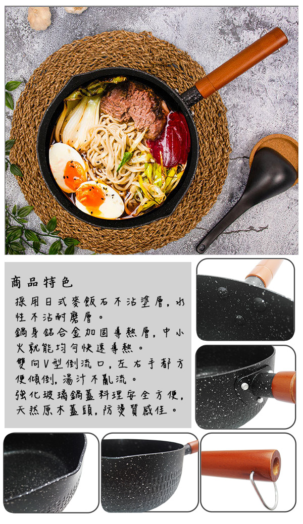 材  質:合金 / 不沾麥飯石塗層 / 原木手把