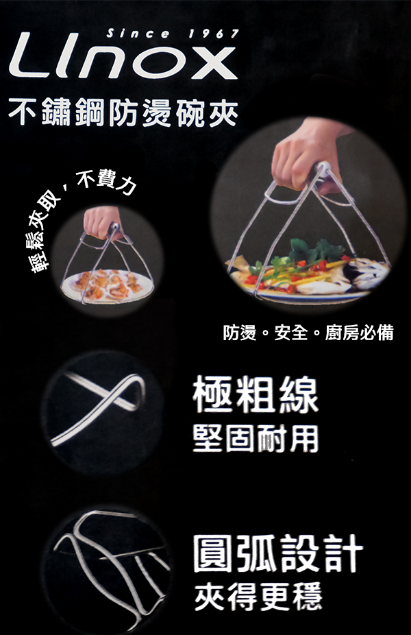 採用#304不鏽鋼材質,廚房好幫手,易於清洗,取代用手直接拿取熱食的困擾,握環設計,增加抓取力道,隔熱不燙手夾取不費力,不論是居家或是營業皆可使用。
