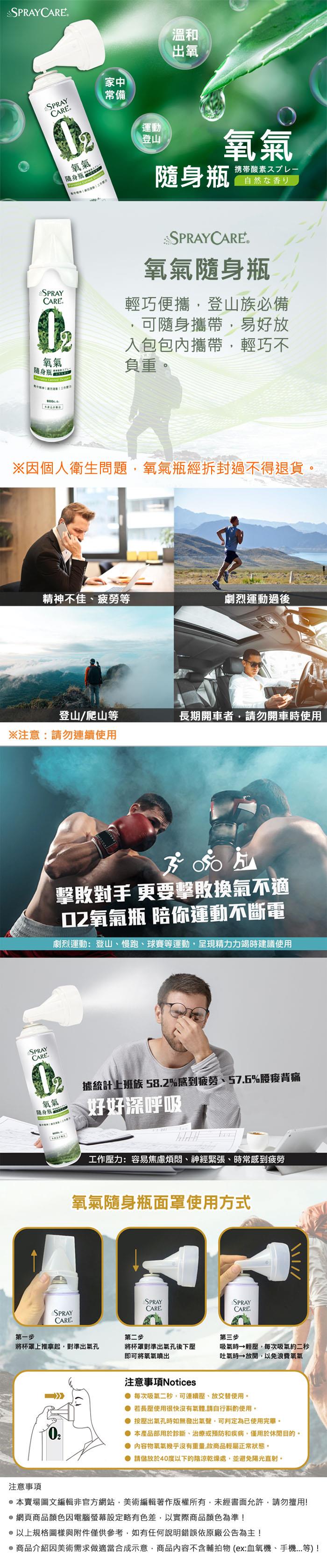 SPRAY CARE+ O2氧氣隨身瓶-含吸嘴(12入)