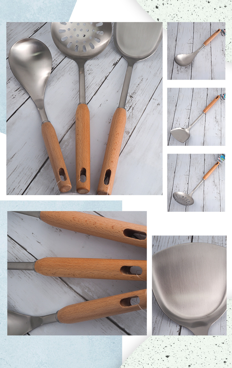 採用304不繡鋼材質,使用壽命大大延長,握柄櫸木,握感極佳好拿好握不燙手,好沖好洗,調理食物好幫手。