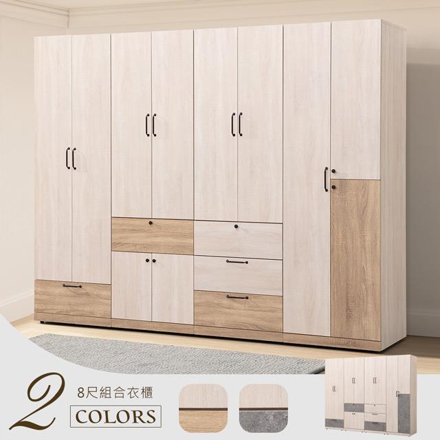 YoStyle 絲瑞8尺組合衣櫃(2色可選)