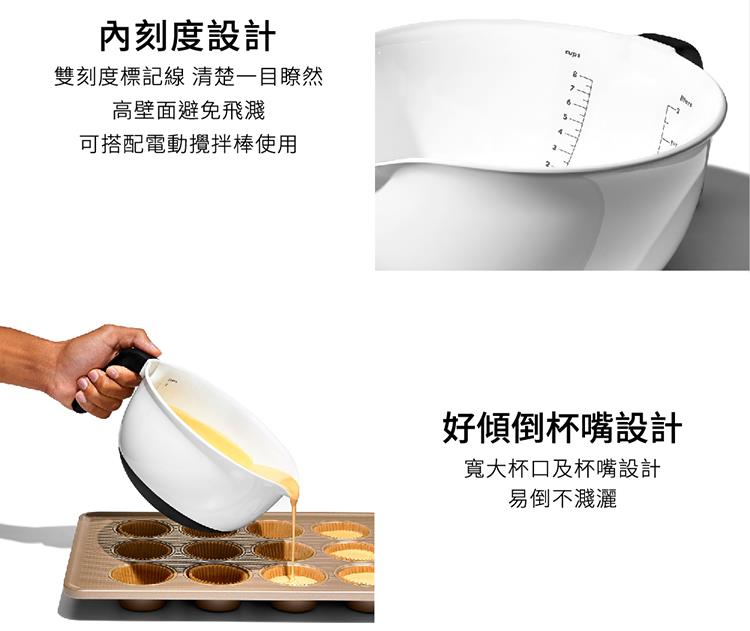 ■碗內有清晰的刻度(公升/杯),方便準確測量