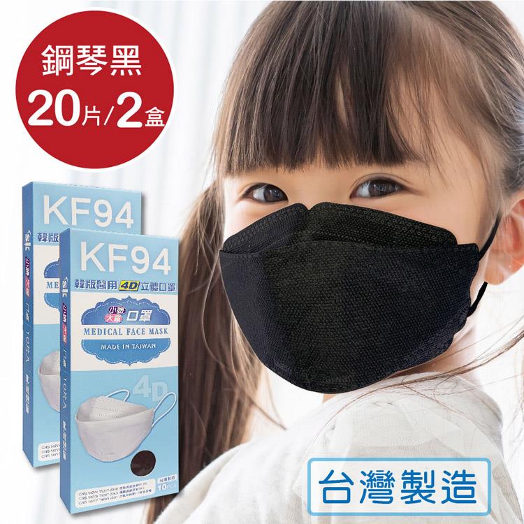 韓版 KF94兒童口罩 醫療立體口罩-鋼琴黑(共20片/2盒)小臉4D口罩 魚型口罩