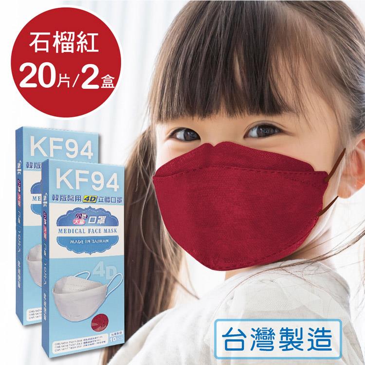 韓版4D口罩 醫療級 魚型口罩 KF94成人立體口罩-石榴紅 (共20片/2盒) 台灣製造 魚形口罩