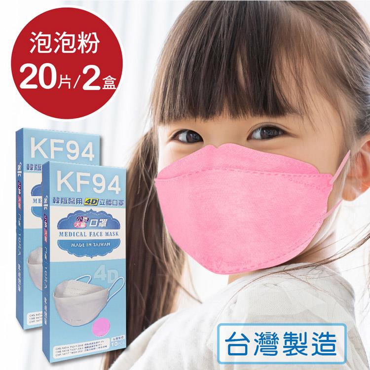韓版 KF94兒童口罩 醫療立體口罩-泡泡粉(共20片/2盒)小臉4D口罩 魚型口罩
