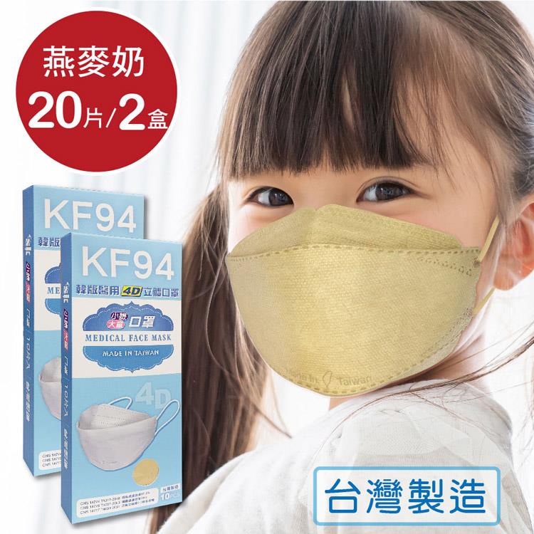 韓版 KF94兒童口罩 醫療立體口罩-燕麥奶(共20片/2盒)小臉4D口罩 魚型口罩