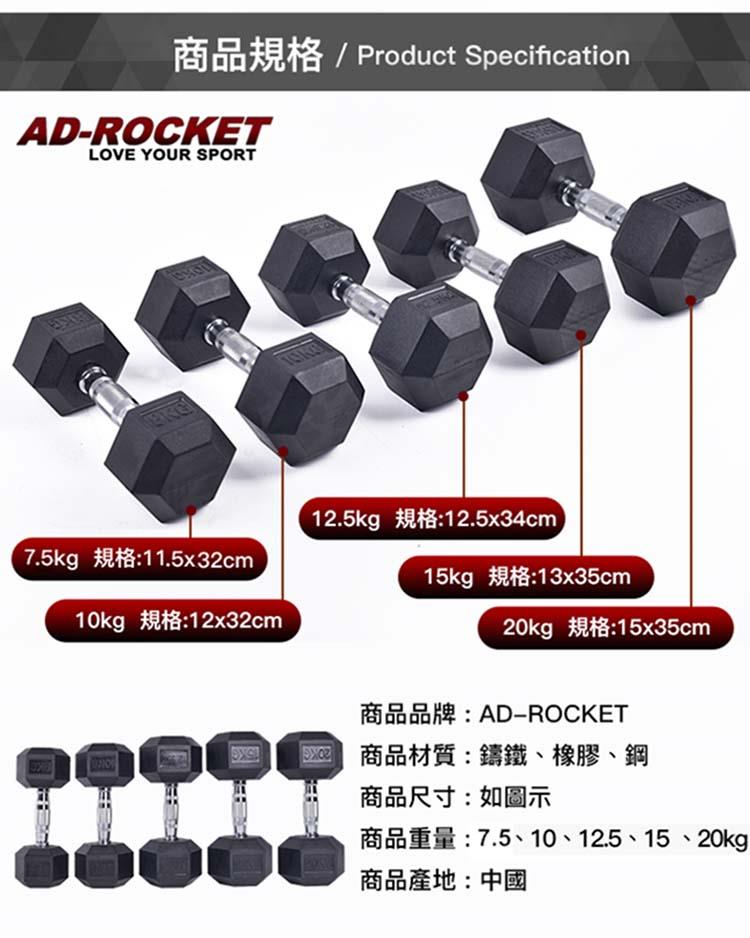 【AD-ROCKET】六角包膠啞鈴/啞鈴/重訓/健身(10KG)