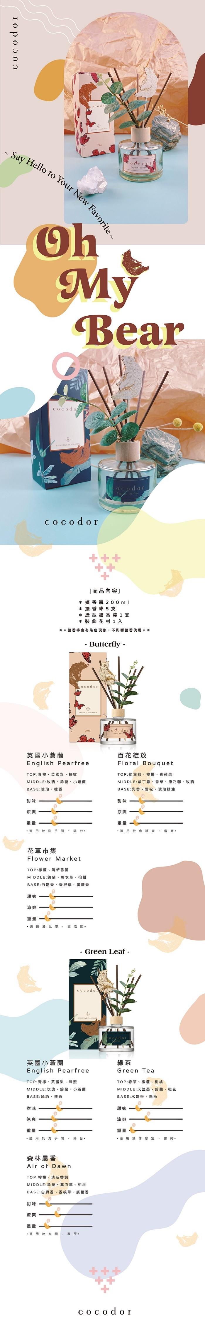 cocodor-棕熊系列擴香瓶200ml-綠葉款-英國小蒼蘭
