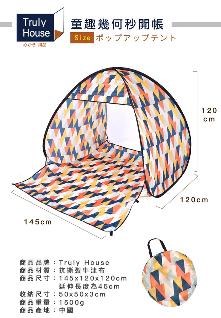 【Truly House】童趣幾何秒開帳篷/沙灘帳/速開帳