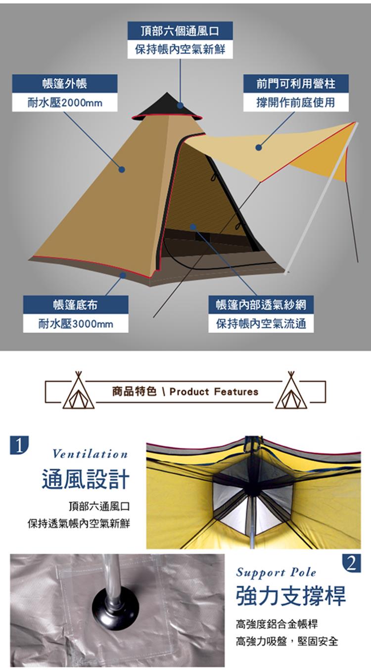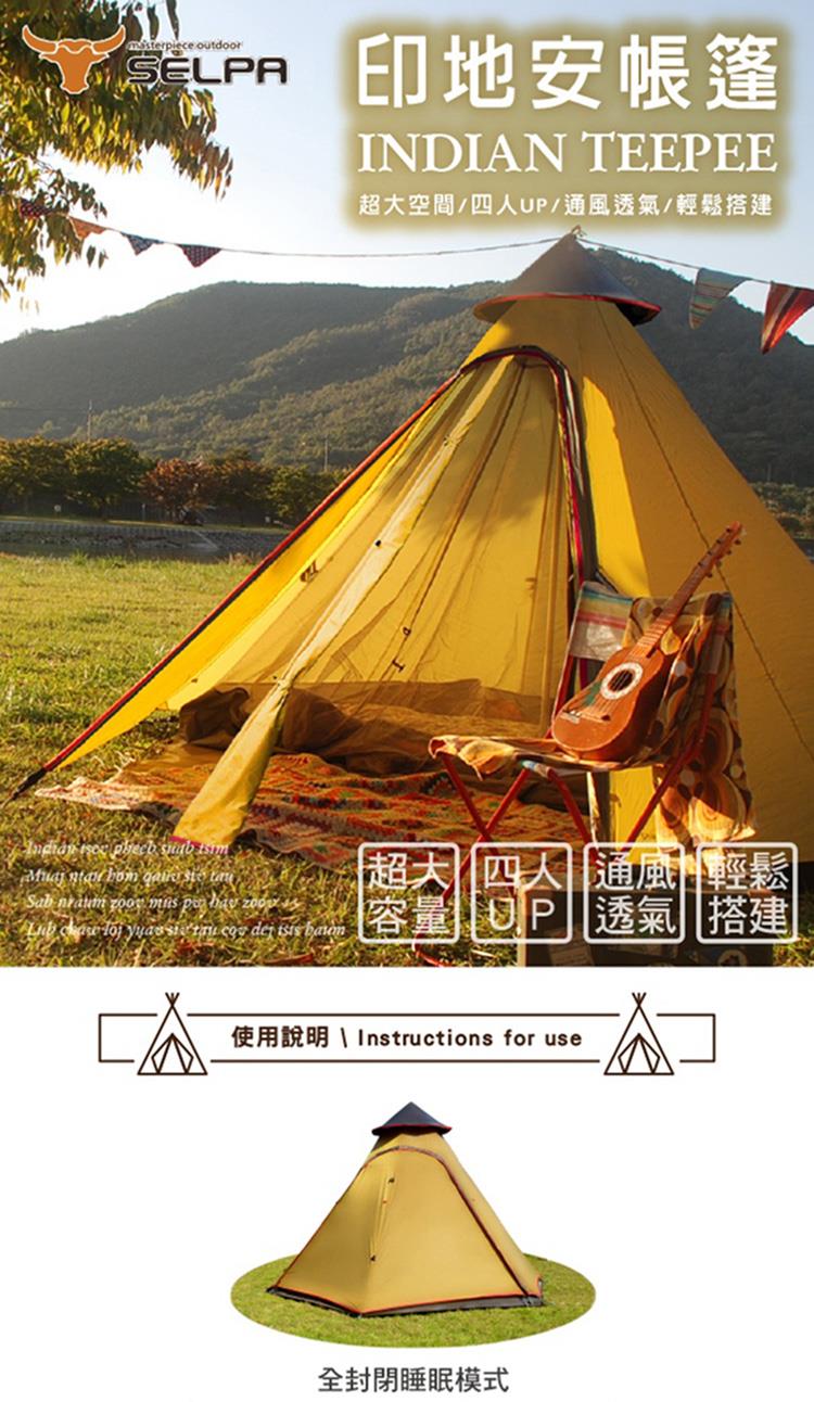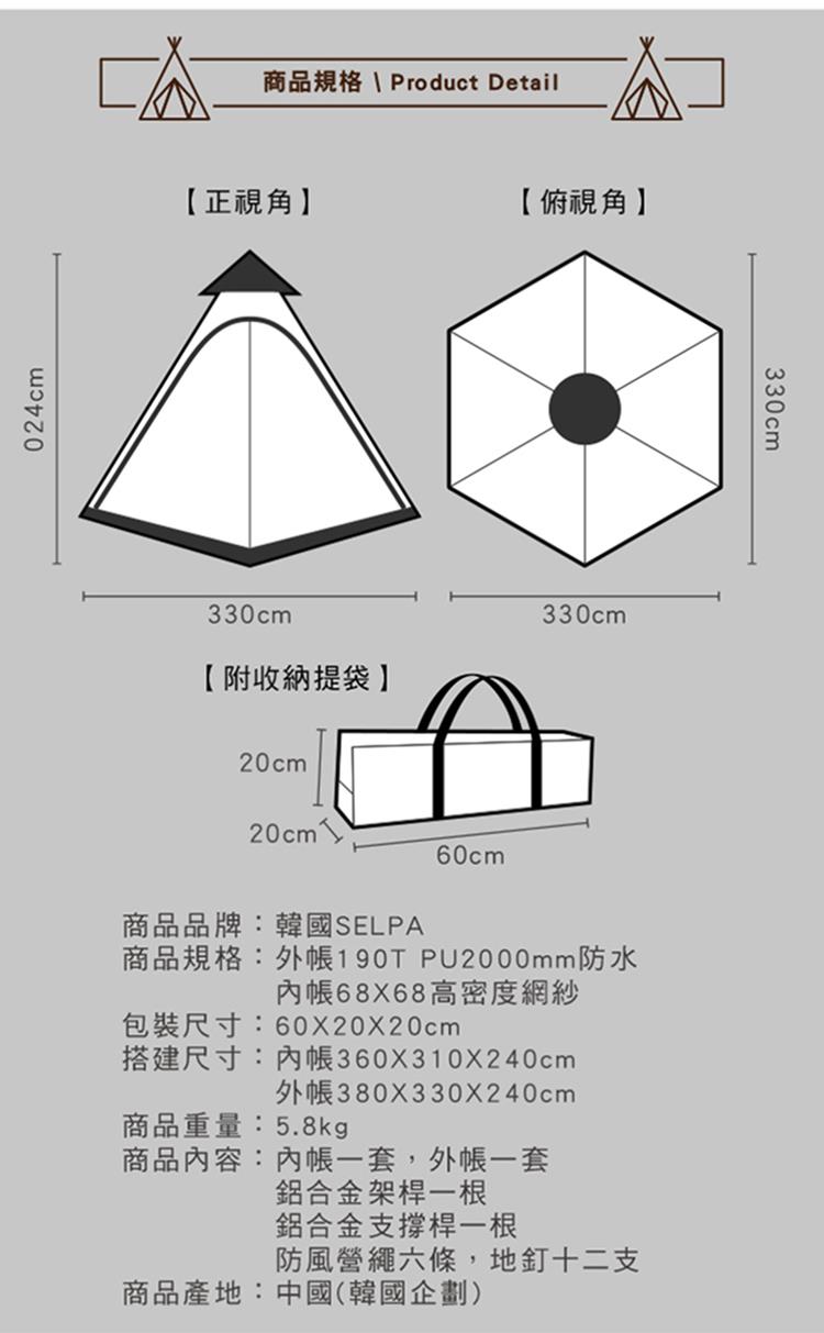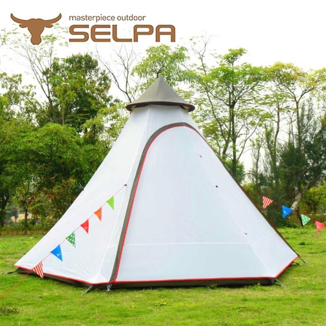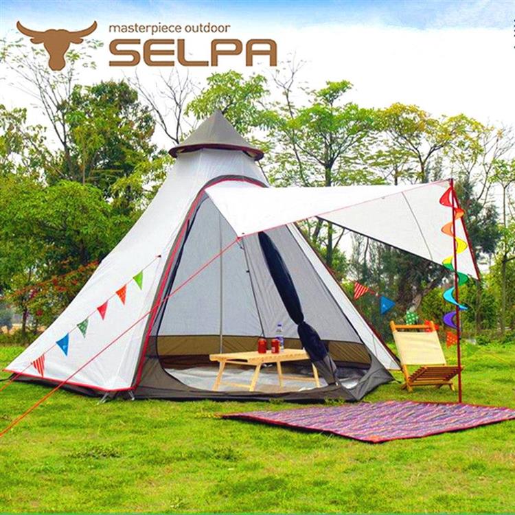 【韓國SELPA】升級款一房一廳 印地安帳 露營 帳篷 家庭帳 五人 大型(白色)