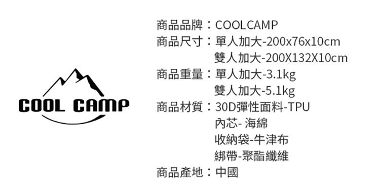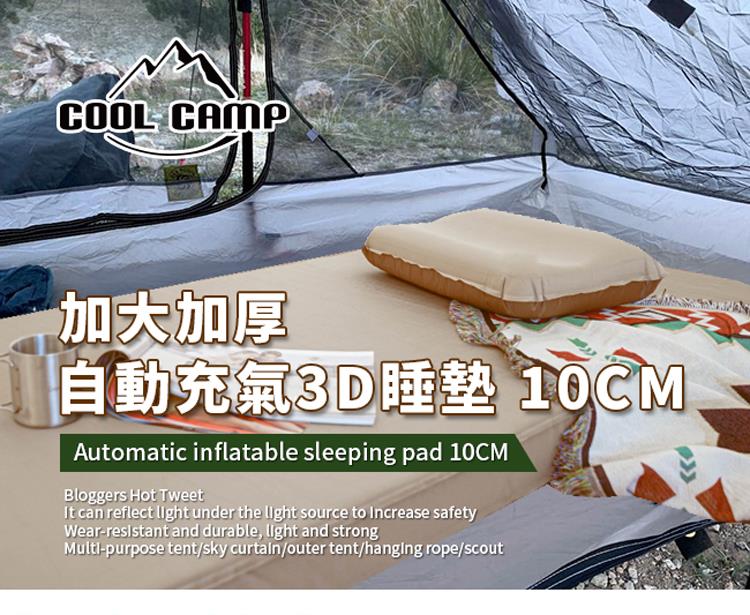 【COOLCAMP】加大加厚自動充氣3D睡墊 10CM/床墊/防潮墊/露營(單人加大)
