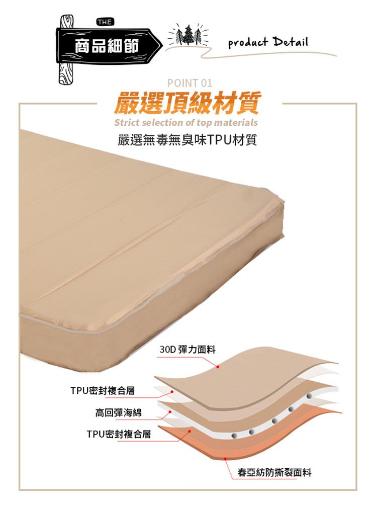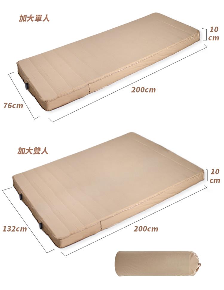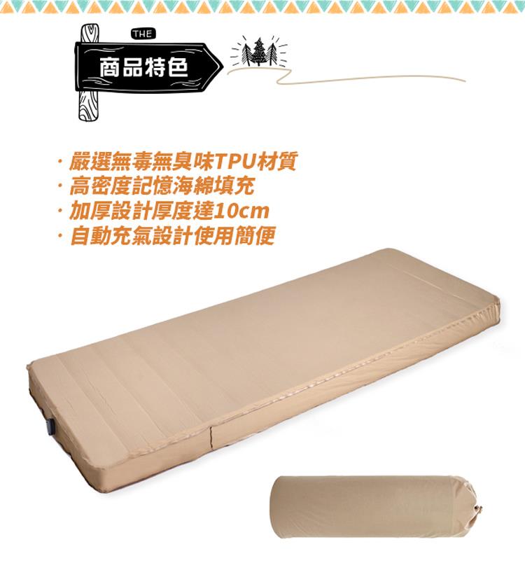 高密度記憶海綿填充,加厚設計厚度達10cm,自動充氣設計使用簡便