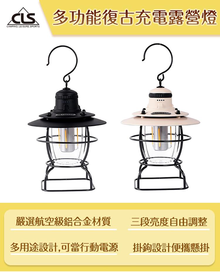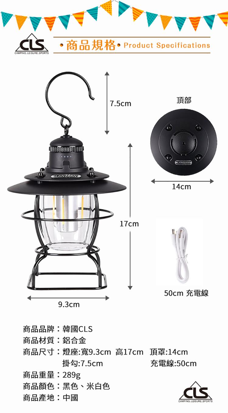 【韓國CLS】多功能經典LED復古露營燈/充電設計/掛燈(兩色任選)