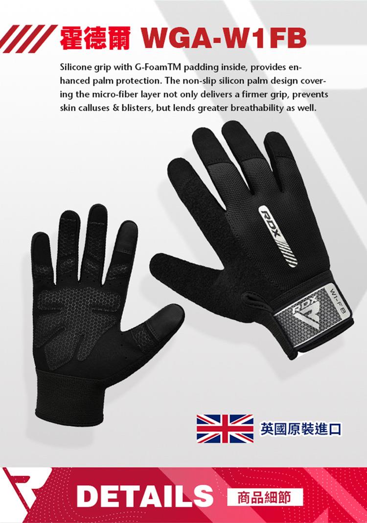 【英國RDX】霍德爾健身手套 WGA-W1FB /重訓手套/手套/拳擊手套