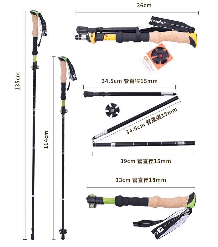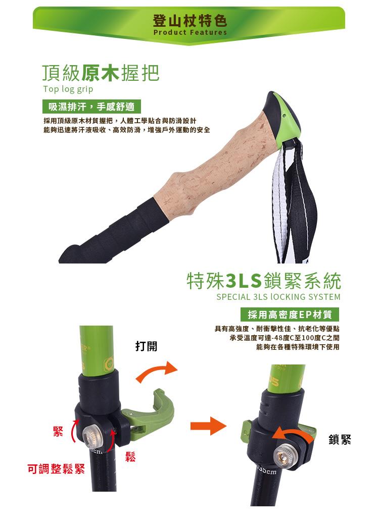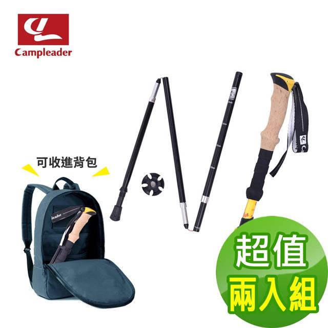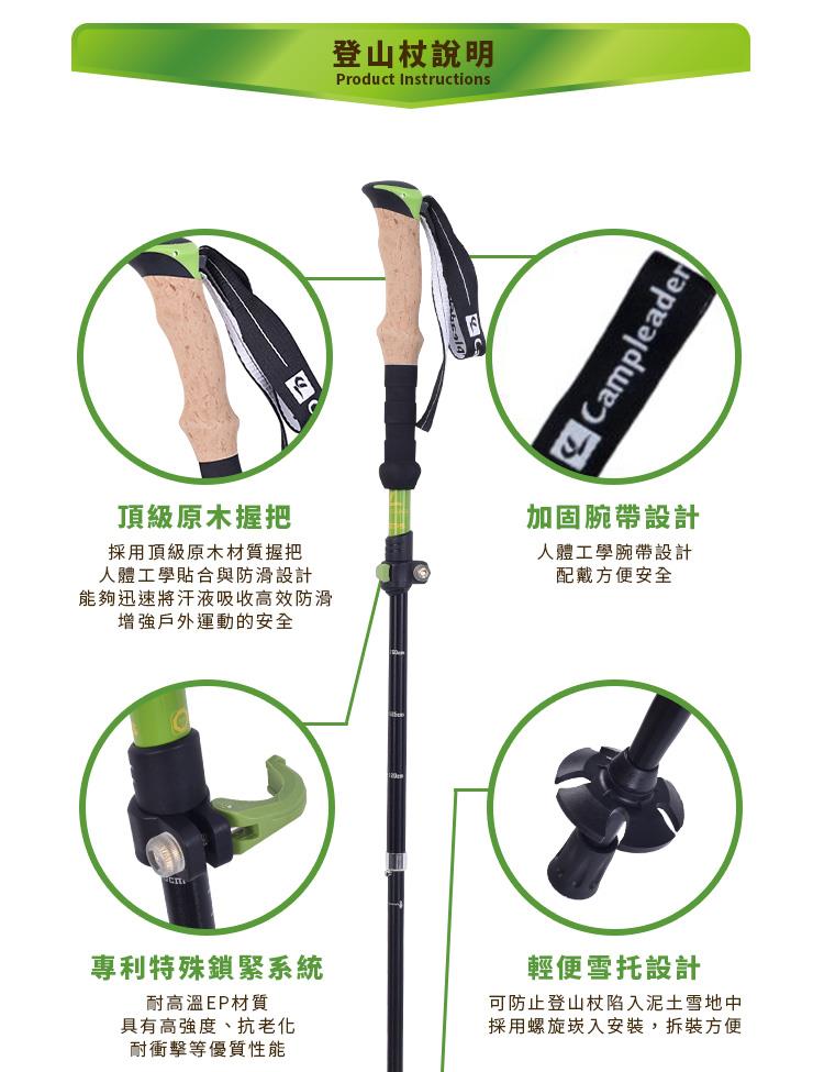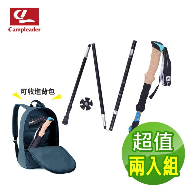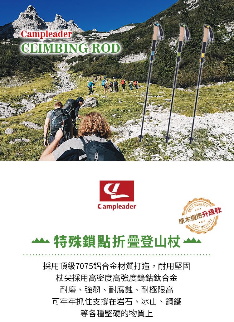 【campleader】高強度鋁合金特殊鎖點折疊式登山杖 原木升級款/三色任選(超值兩入組)
