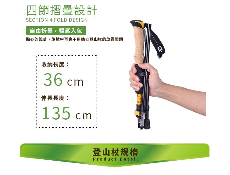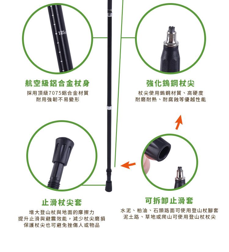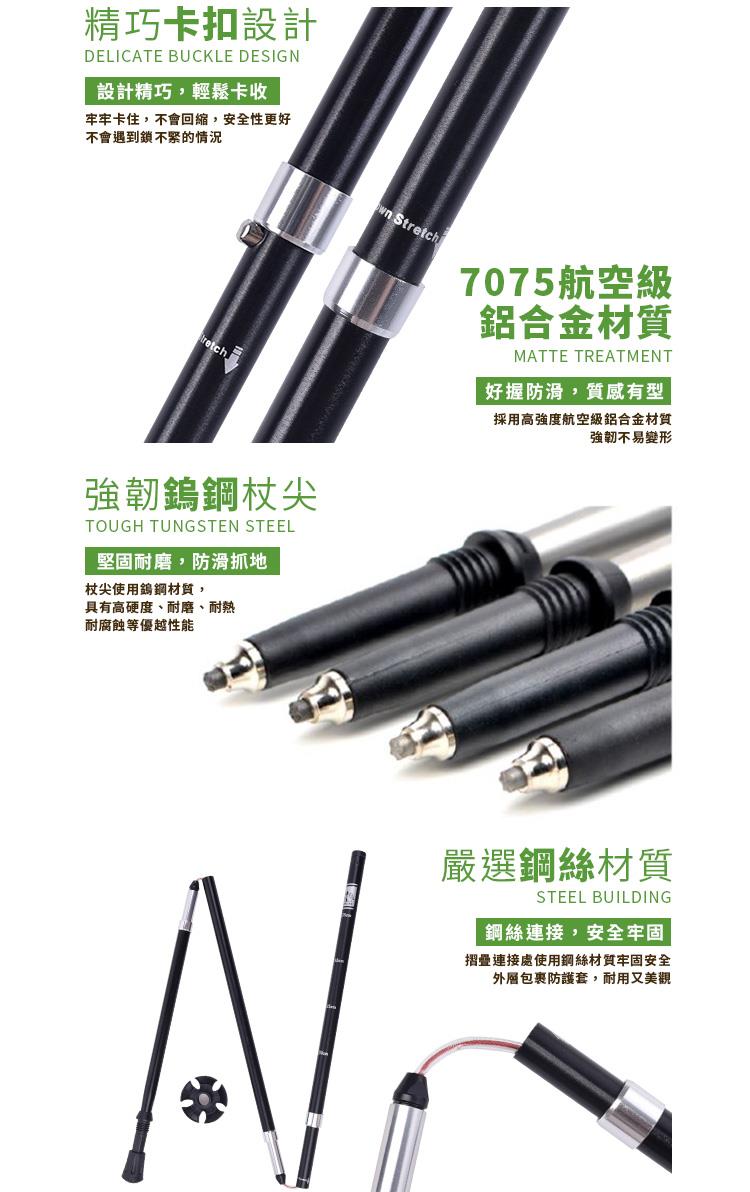 特殊鎢鋼杖尖合金材質,航空級7075鋁合金材質,四節式收納輕巧好攜